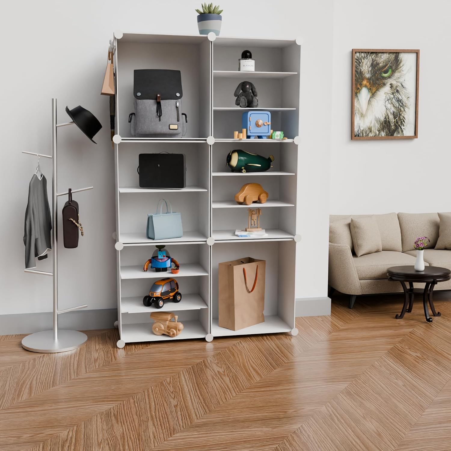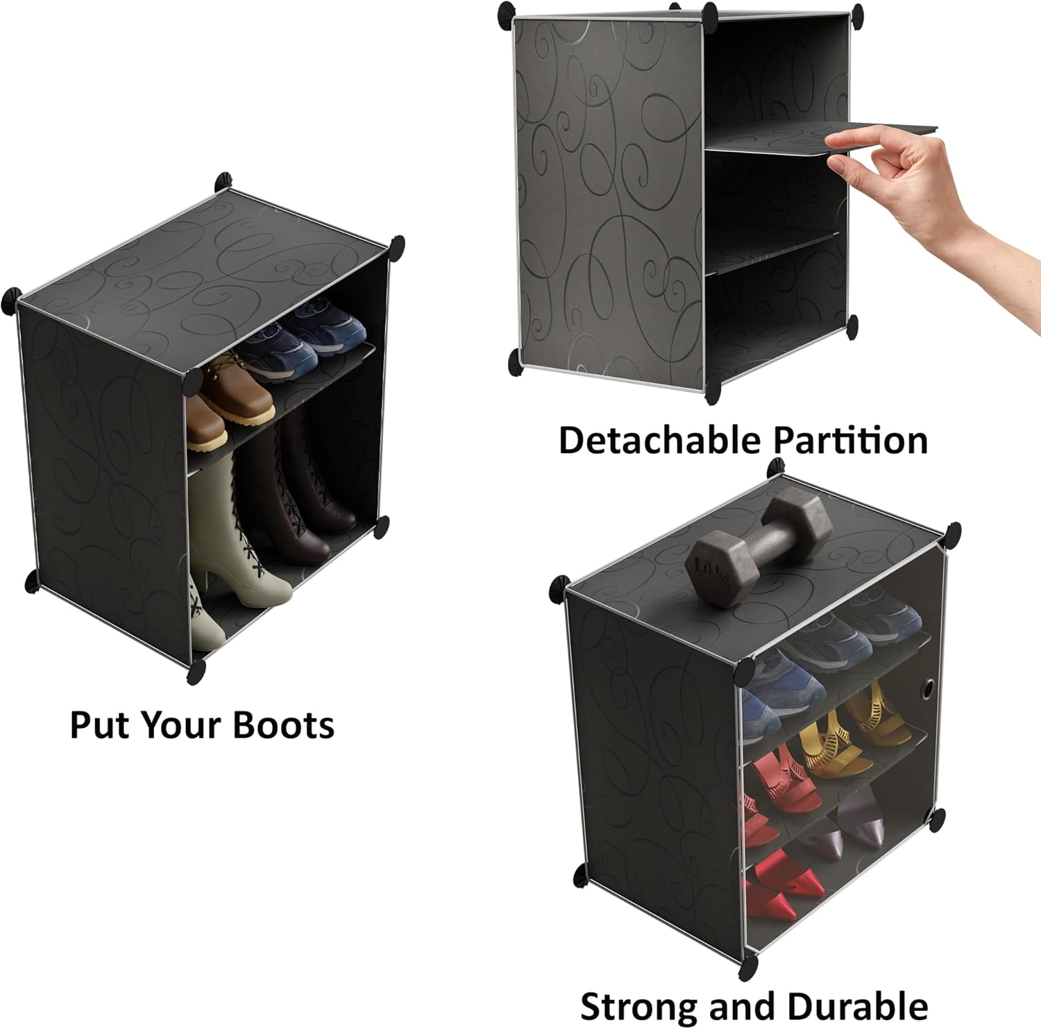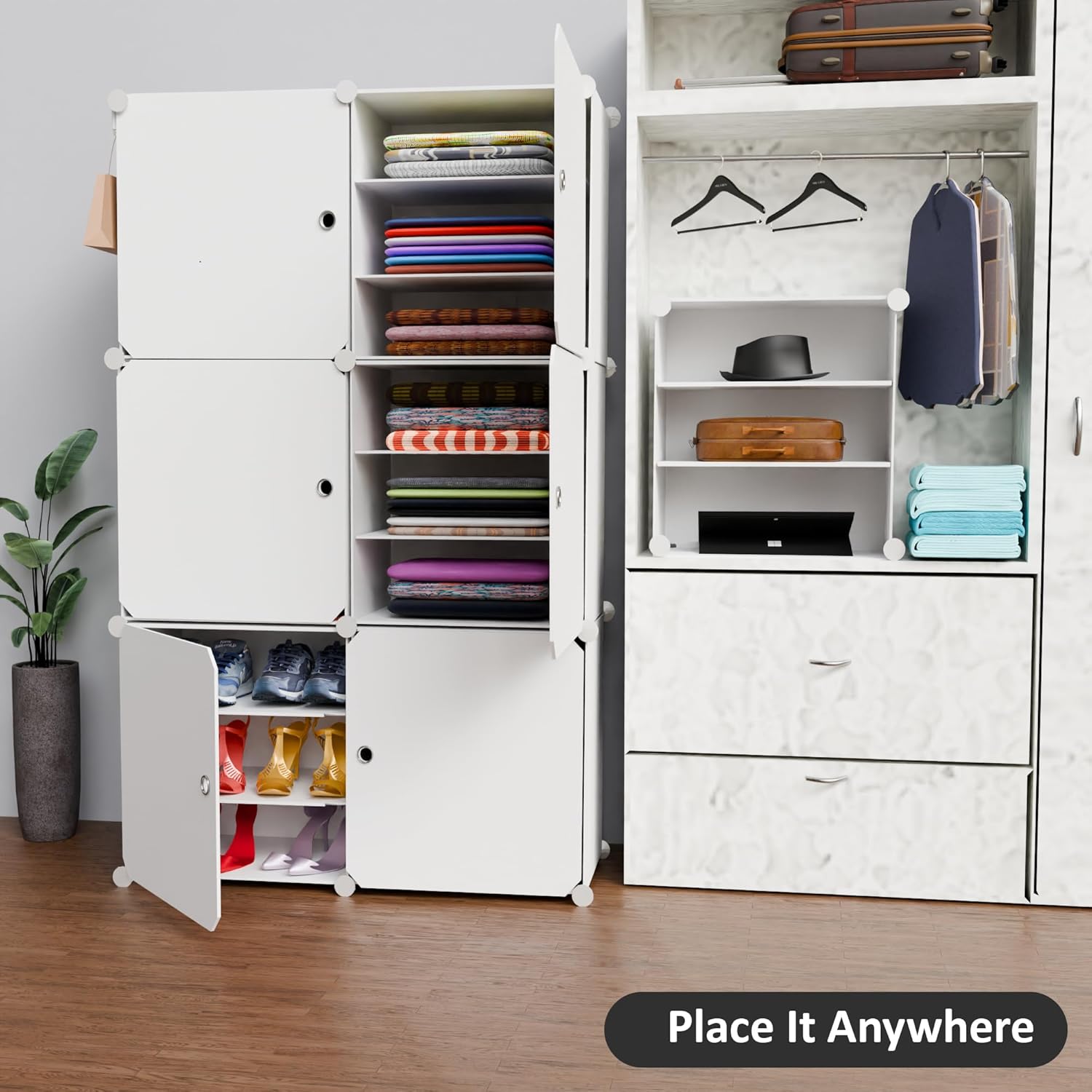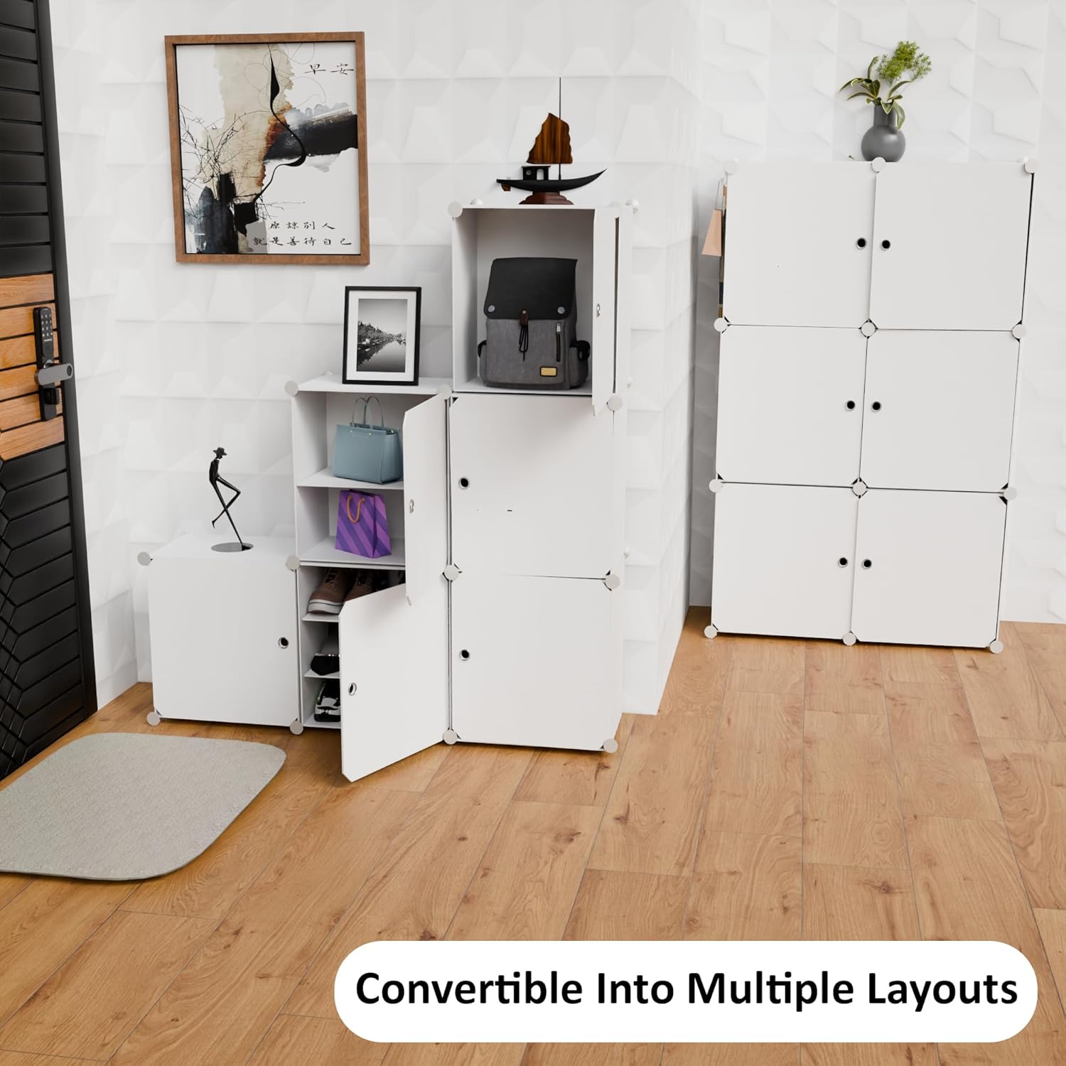 Customizable Layout: Stack and arrange cubes to fit shoes, clothes, or accessories your way.