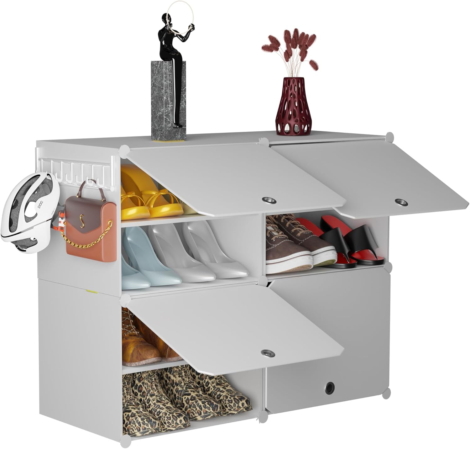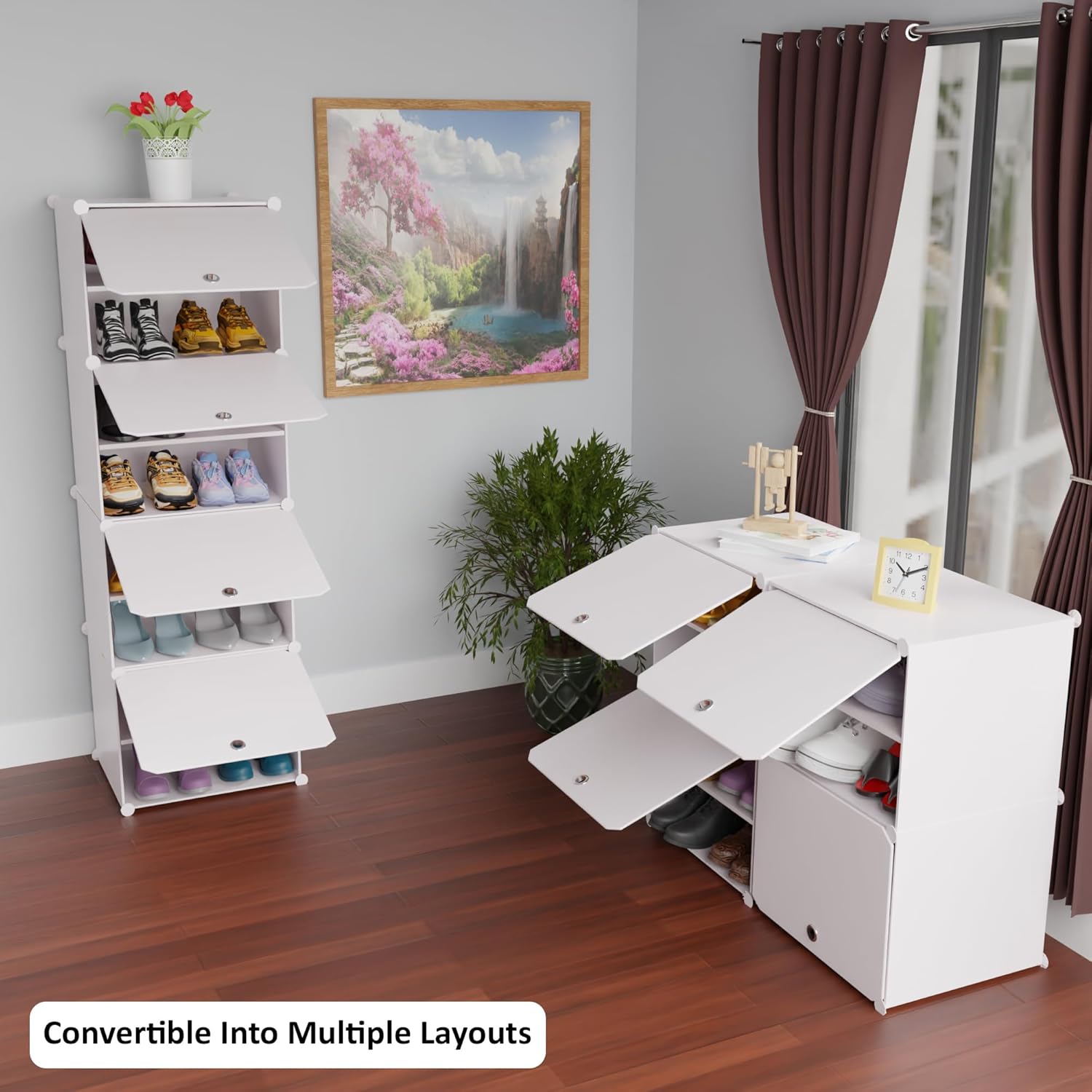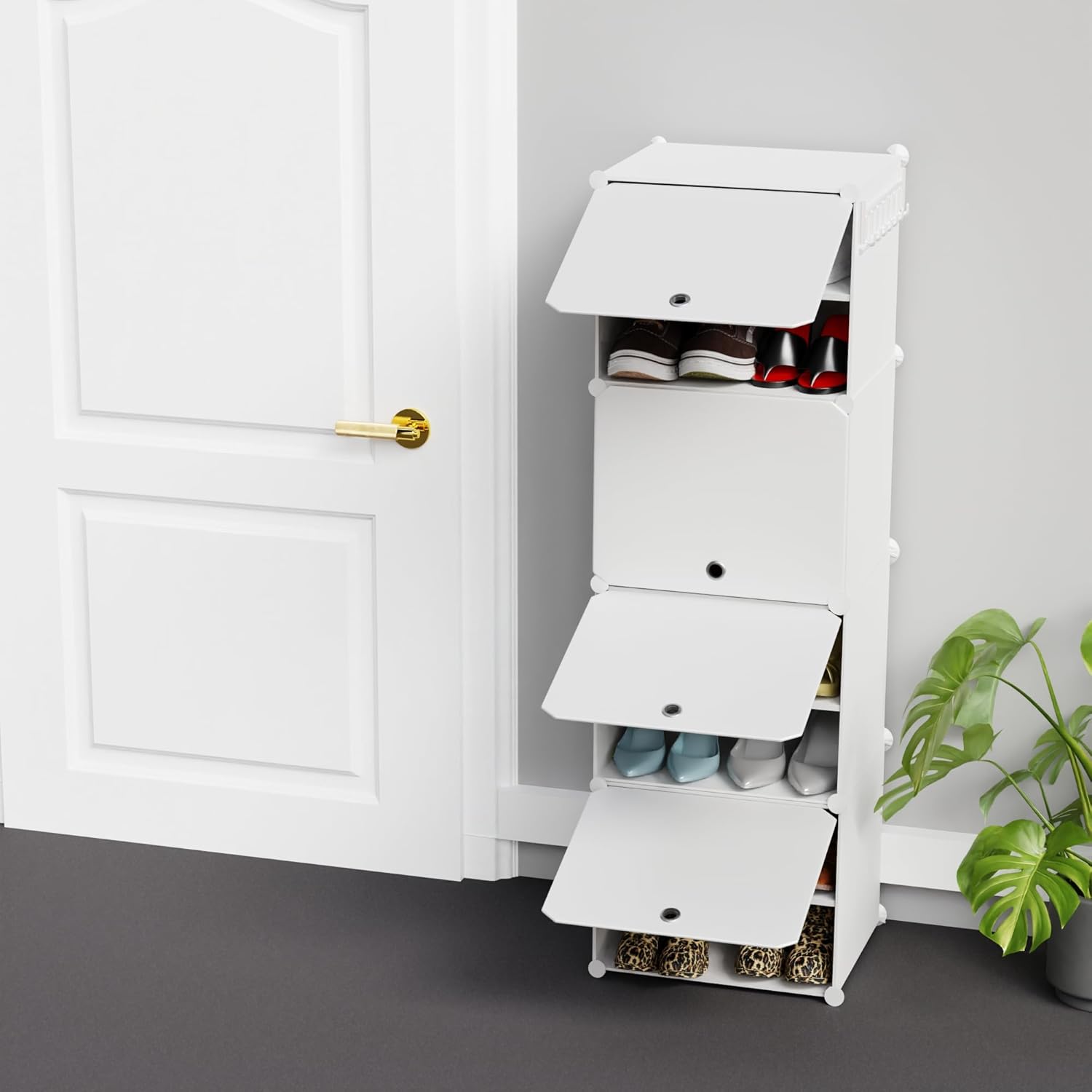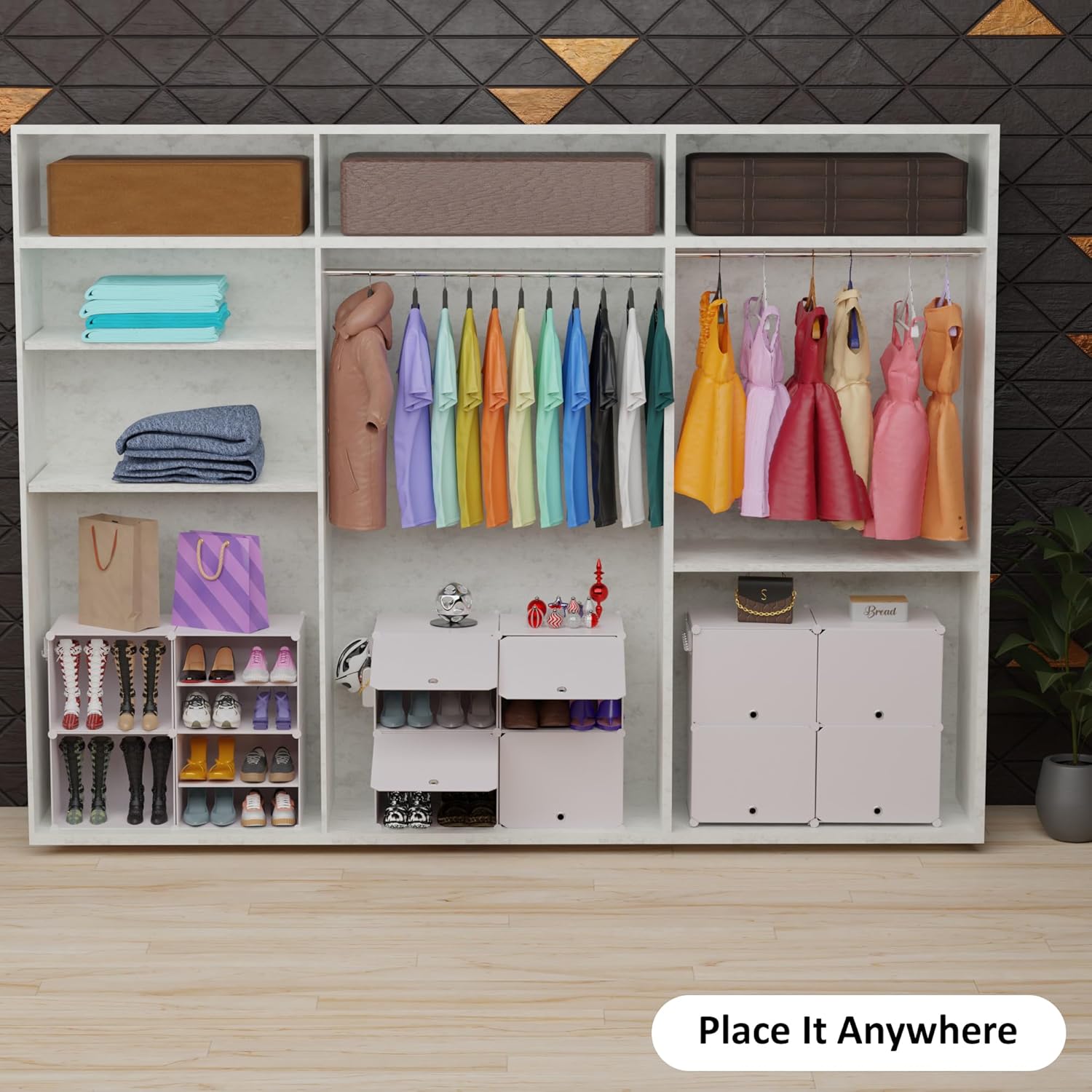 Clothes and Shoes Cabinet Organizer for Closet and Entryway, Convertible Strong & Lightweight, Wardrobe Organizer Storage Box (4 Cubes, White)