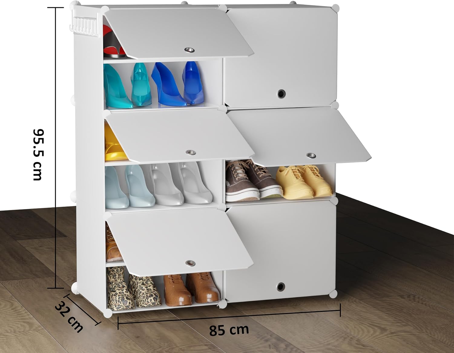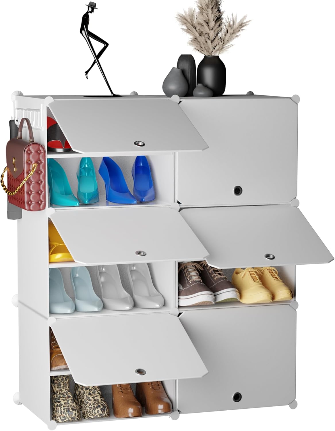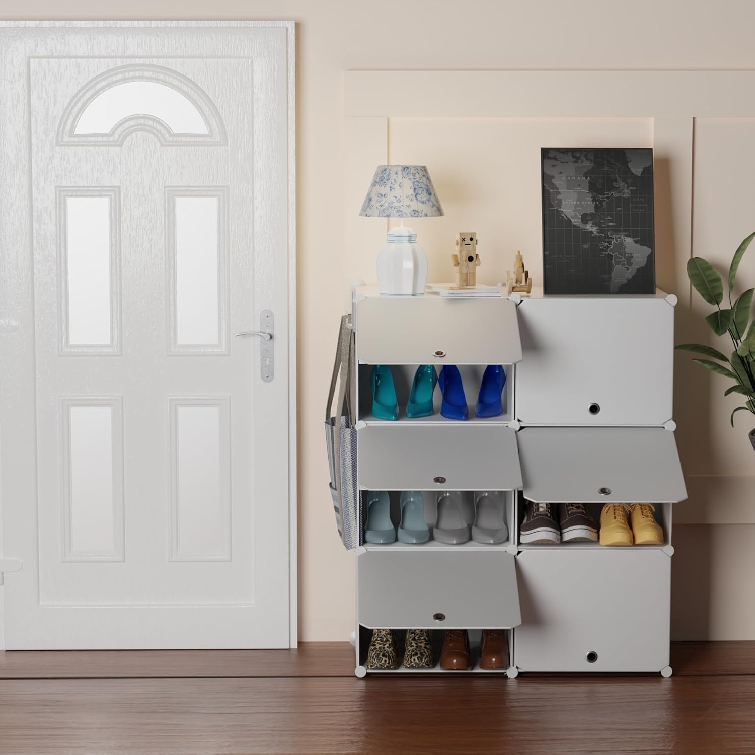Clothes and Shoes Cabinet for Closet and Entryway, Portable, Convertible, Shoe Rack, Strong Lightweight, Wardrobe Organizer Storage Box (6 Cubes, White)