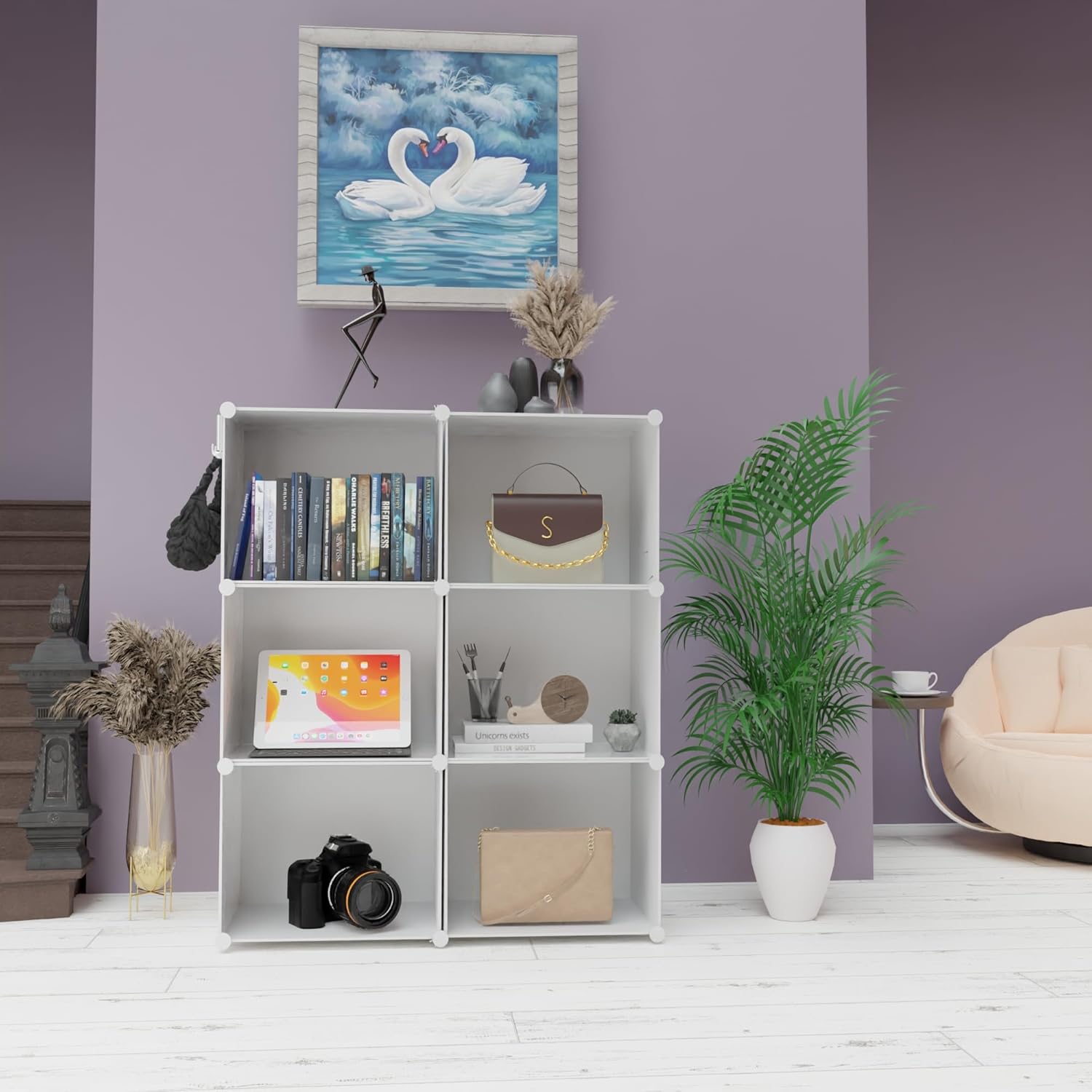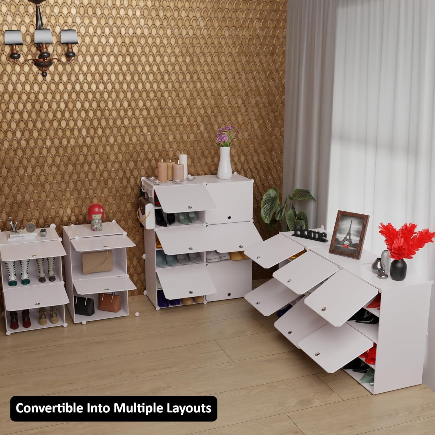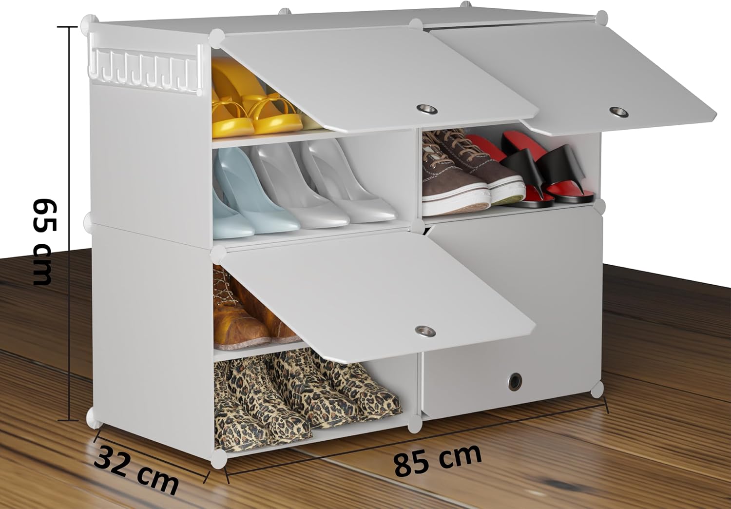Clothes and Shoes Cabinet for Closet and Entryway, Portable, Convertible, Shoe Rack, Strong Lightweight, Wardrobe Organizer Storage Box (6 Cubes, White)