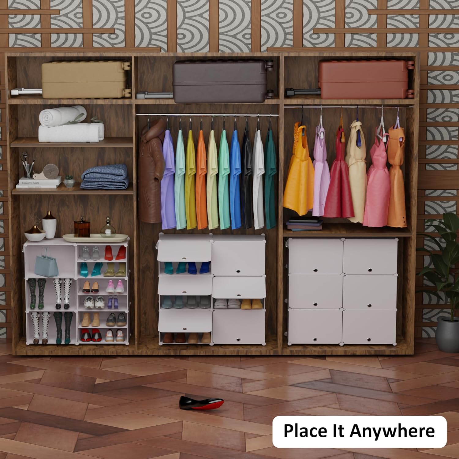 Customizable Layout: Stack and arrange cubes to fit shoes, clothes, or accessories your way.
