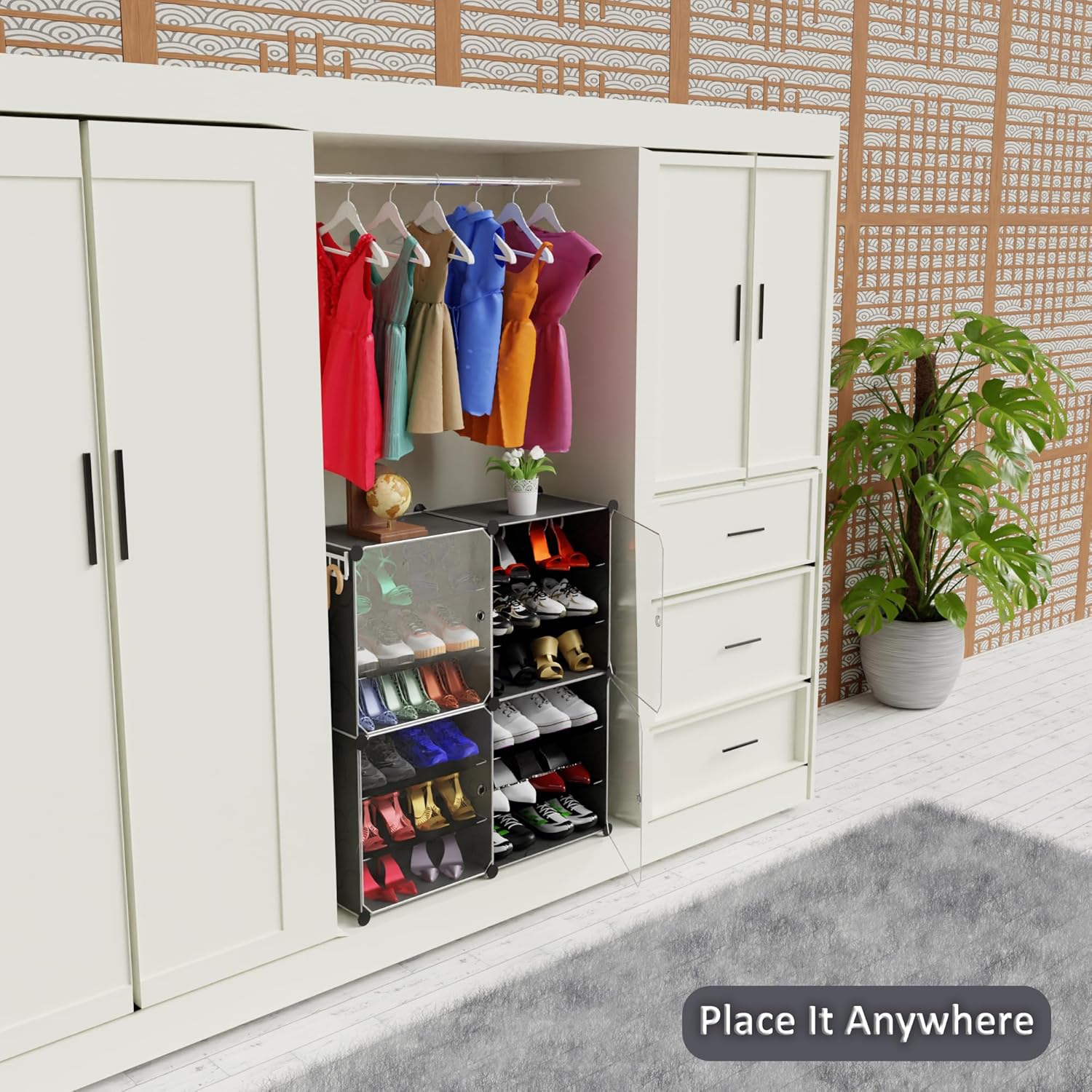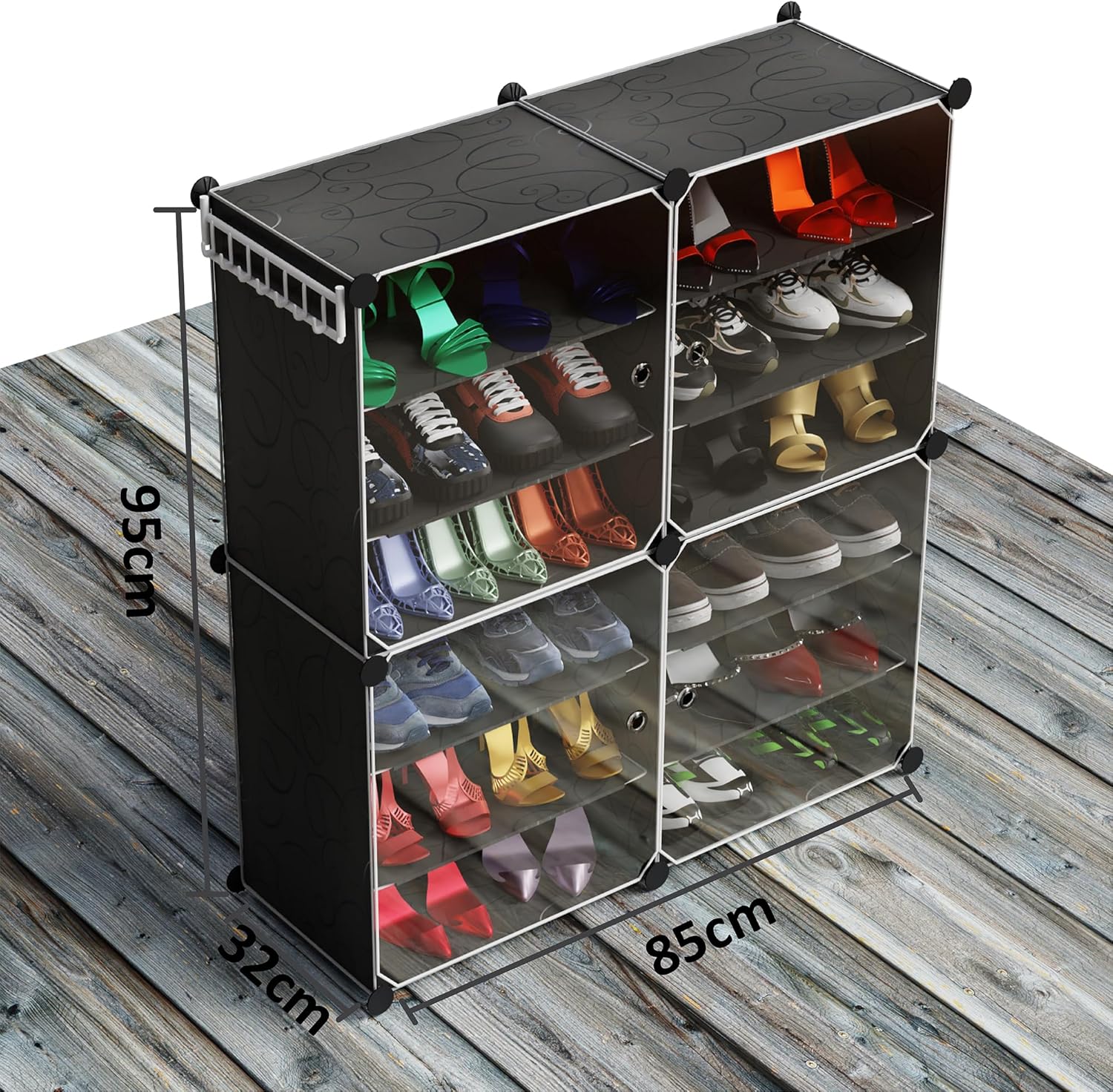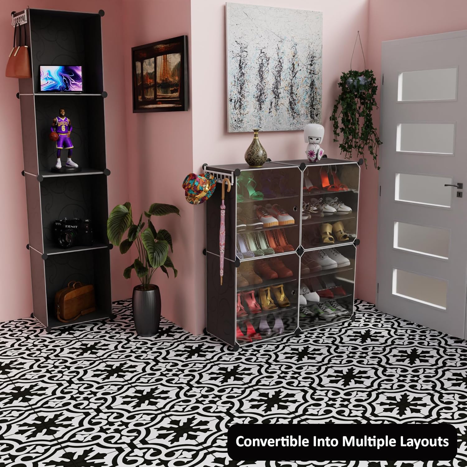 Clothes & Shoes Cabinet for Closet and Entryway, Convertible Portable, Strong Lightweight, Wardrobe Storage Box (4 Cubes, Black)